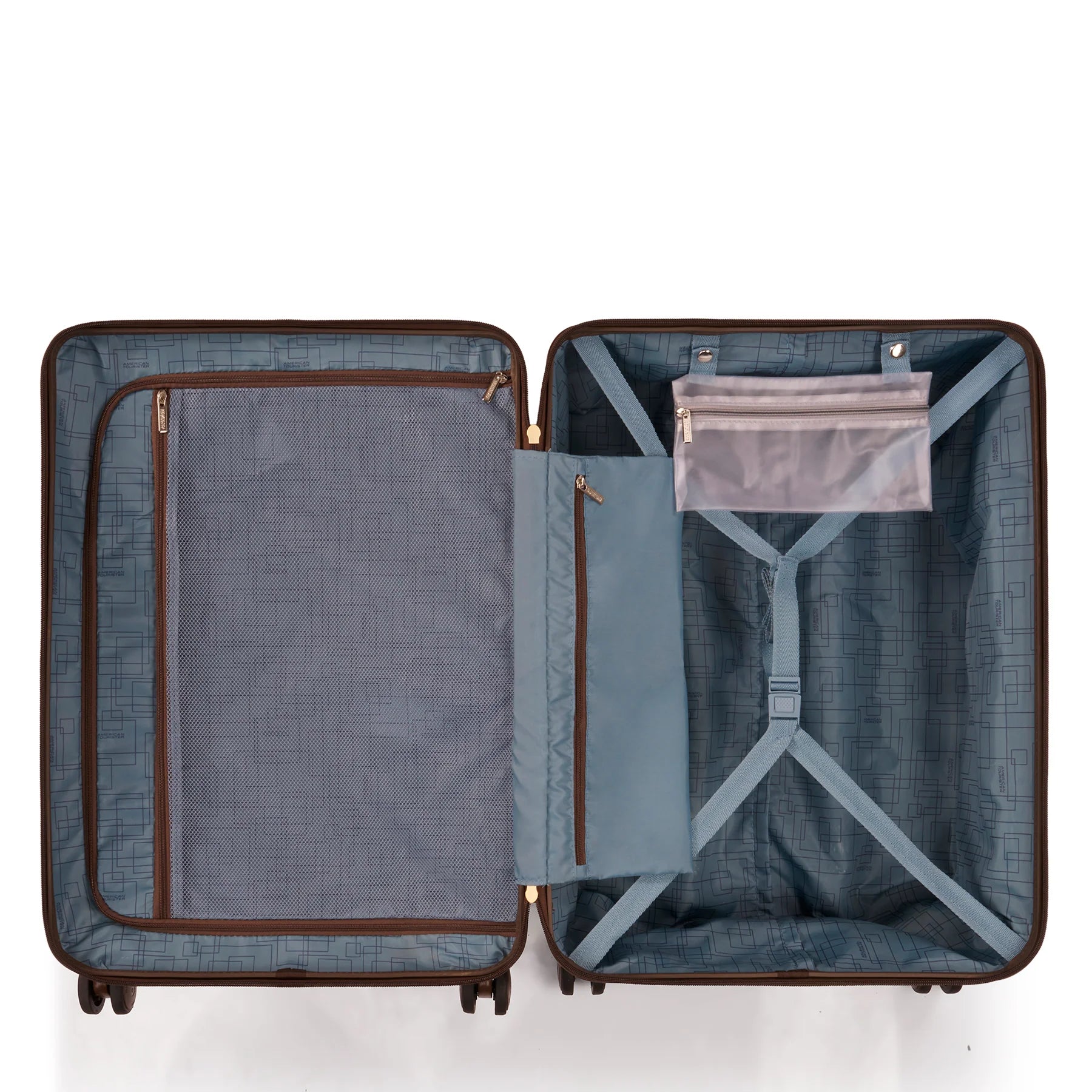 - 8 Double Spinner Wheels: Smooth-glide, double spinner wheels provide effortless maneuverability in all directions, ensuring a seamless travel experience on any surface—airport terminals, pavements, or hotel lobbies.