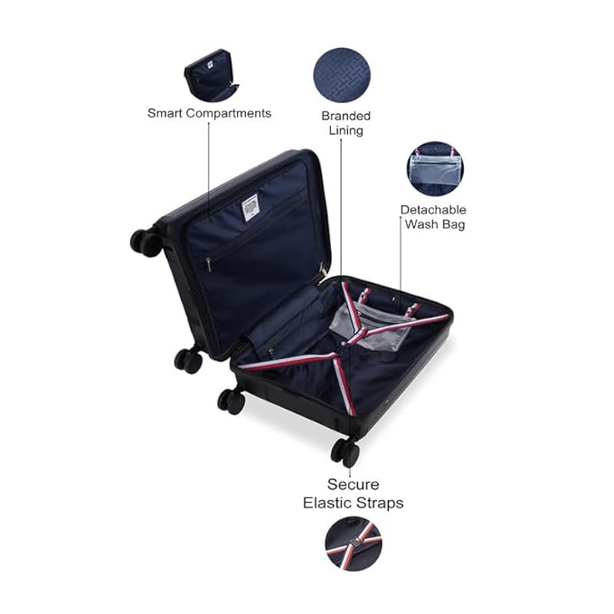 SIGNATURE STYLE & UNYIELDING DURABILITY: Make an unmistakable statement with the Tommy Hilfiger Mckinley Luggage's distinctive White premium polypropylene hardshell. Adorned with stylish branding, a soft silicone logo badge, and a distinct ribbed design, this lightweight yet impact-resistant luggage offers robust protection while ensuring you travel with undeniable flair. Ideal for Gifting.